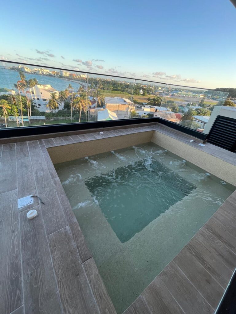Sky Lounge con vista 360 sobre San Andrés, ubicado en el altillo, con jacuzzi, cocineta, BBQ, baños y ducha.